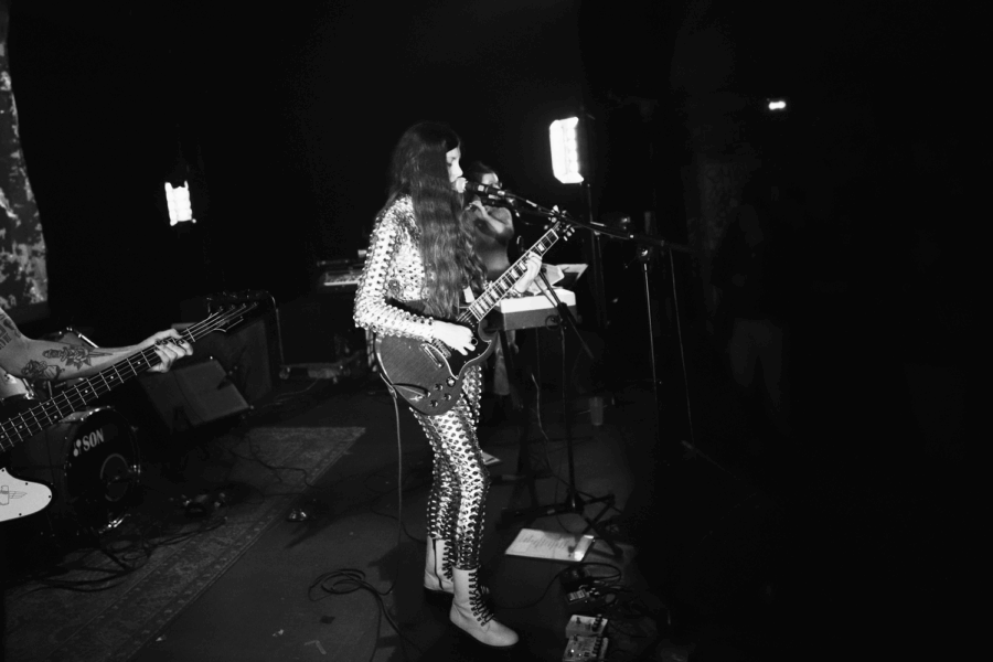 Azurite Sun, projet de la guitariste-chanteuse-organiste-etc Léa Thirion (allball, t-shirt), avait éclos, pour les quelques-uns à s’être penchés sur son bandcamp, comme un projet d’ambient assez minimal, où le recueillement laisse la place au vide, voire, pourquoi pas, à une certaine prostration… Les encore-plus-curieux qui auraient eu l’excellente idée de suivre le groupe (car c’en est un aussi) sur scène découvrent depuis un an ou deux des chansons, des poèmes d’Emily Dickinson devenus folk-songs spectrales, des arrangements nocturnes et parfois assez troublants, et à vrai dire un sens de la mélodie et de l’harmonie très personnel. (…) Azurite Sun évoque des paysages, des moments suspendus, des clair-obscurs où la perception s’affine. La simplicité du dispositif, frontale, vient rappeler la musique folk mais sans en avoir les codes, le style d’écriture, ni vraiment l’instrumentation. «