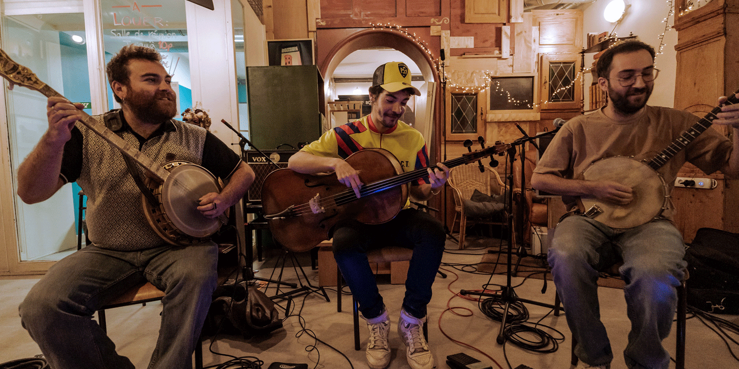 Dordogne est né d’un bug musical provoqué par trois musiciens issus des musiques traditionnelles françaises qui, par goût pour l’innovation et l’expérimentation, ont exploré ces failles de groove et de tourneries, fouiné dans le math rock et dévié leur propre trad’. En s’élargissant, le bug est devenu un rock répétitif à douze cordes, tenté par la transe, rattrapé par la techno – une lutte entre acoustique et électrique pour aboutir à un son radical, sauvage et machinal.