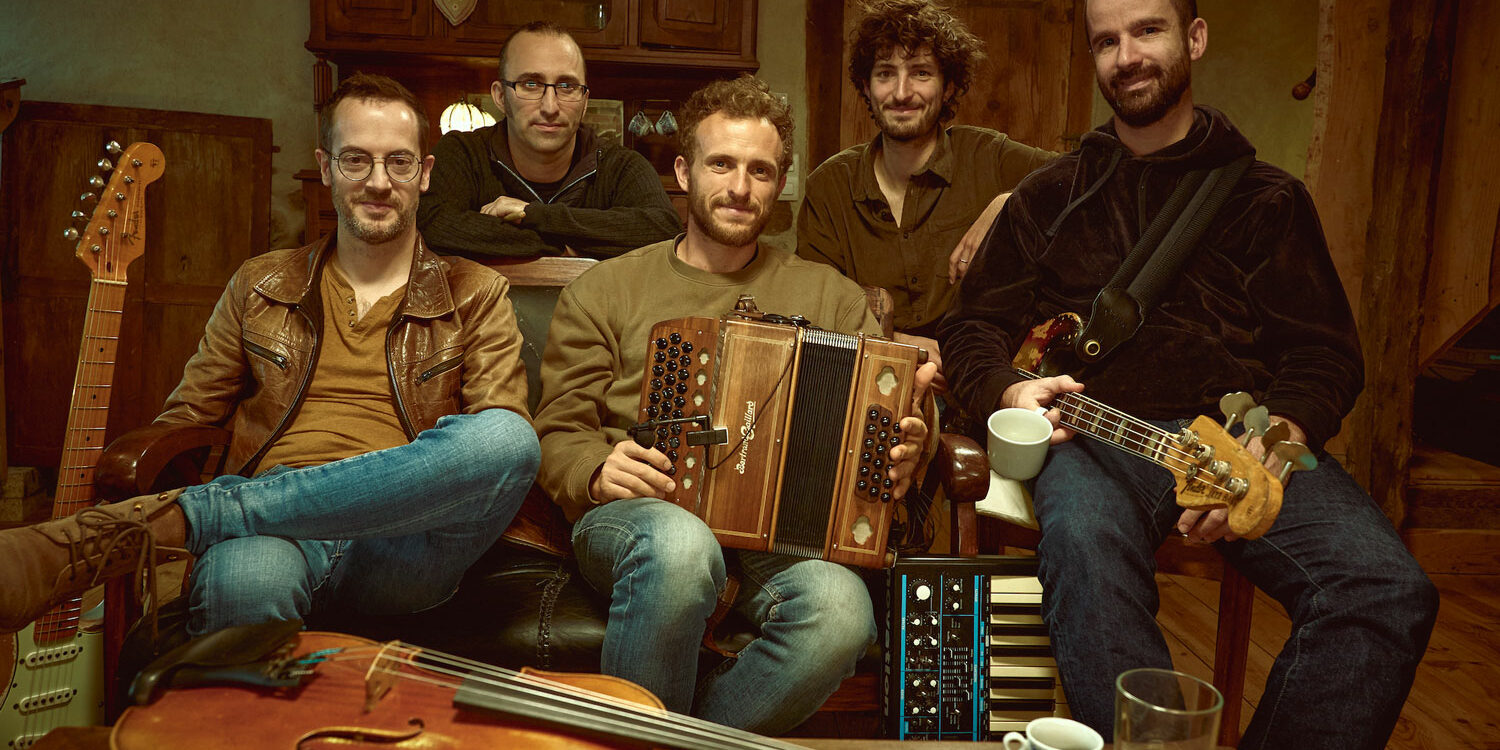 Sioule, né à la confluence des musiques traditionnelles d’Auvergne et du funk psychédélique des 70’s, est le fruit d’une rencontre entre des musiciens de ces univers à priori éloignés. Cultivateurs d’expérimentations à base de traditions locales, fils de paysans déracinés de leur terre pour des cités électrisées, ils oeuvrent à s’inventer une culture commune et originale dans laquelle leur histoire et leur rapport à la danse restent centraux.