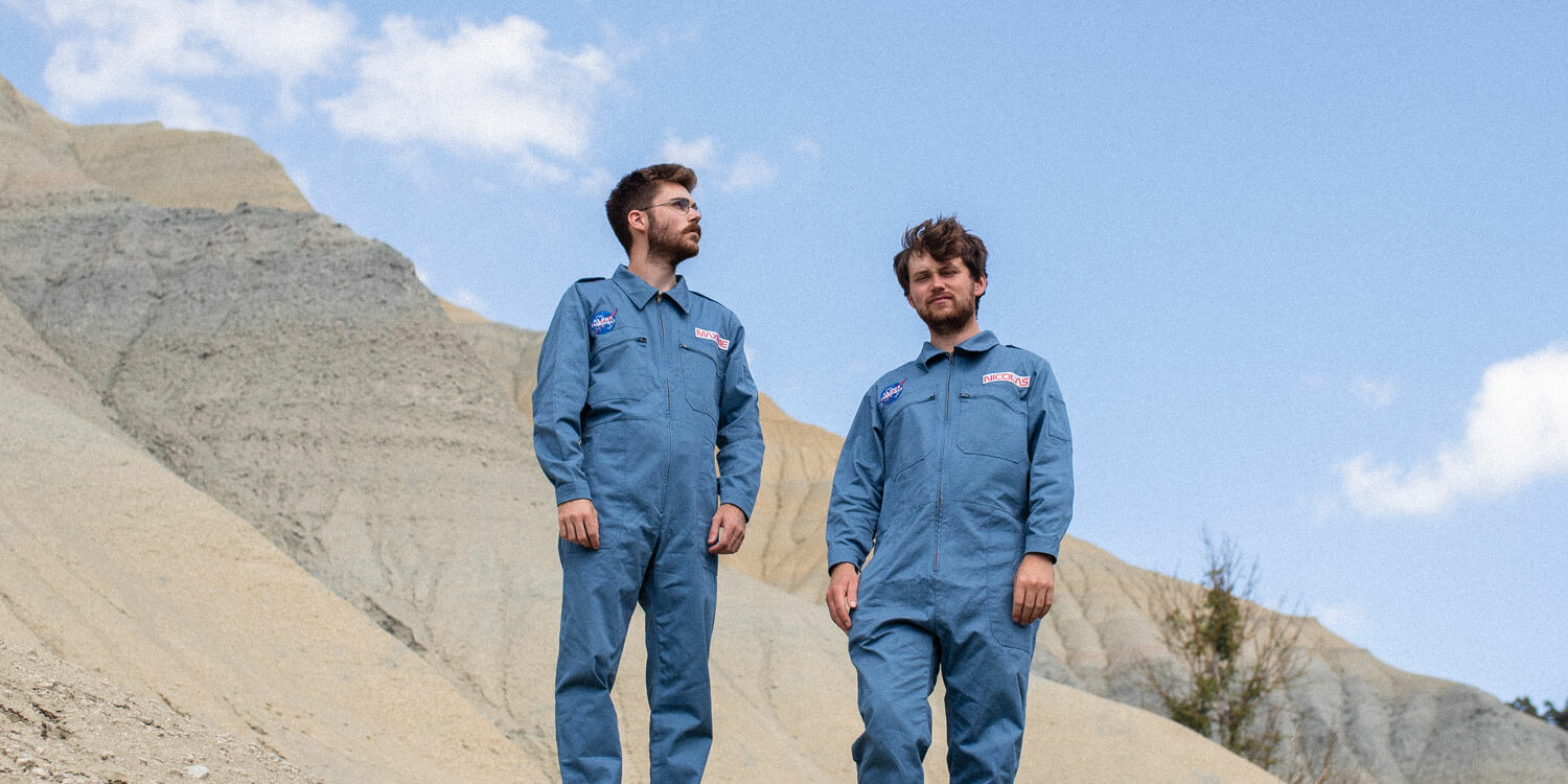Their debut album, *Shadows*, is a series of cinematic sequences. Without explicit narration, the compositions trace inner trajectories, oscillating between phases of preparation and moments of contemplative suspension. The duo’s visual and sonic universe is deeply rooted in the aerospace imagination of the 1970s. On stage, dressed in outfits inspired by the film First Man, they showcase a retro-futuristic aesthetic.