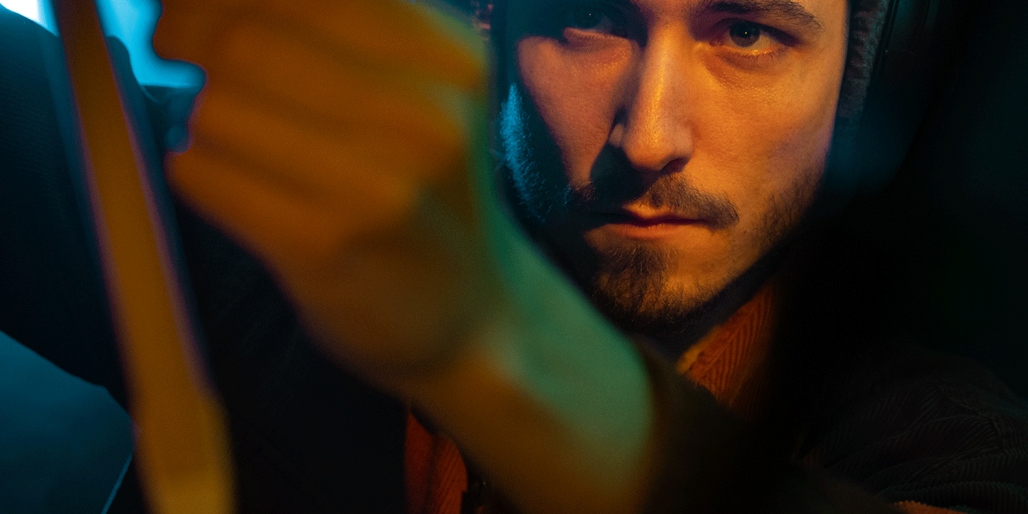 Kyara Sonor is an immersive, electroacoustic musical and sound project. Equipped with a drum set, percussion, a bow, microphones, and effects modules, Matheo Ciesla transports us into a suspended, dreamlike, cinematic space-time, where the drums lead us to places where they are not usually expected, through a 360° immersive spatial setup.